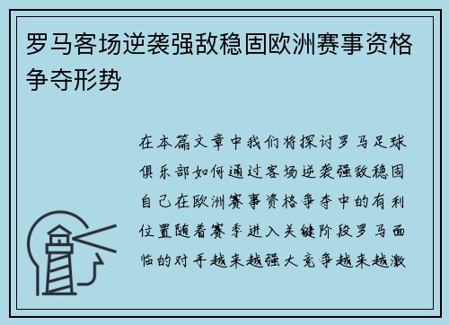 本文将探讨欧洲足球锦标赛(欧预赛)常规赛阶段的激烈竞争,聚焦各支强队在赛场上的表现与胜利之争。欧预赛作为通向欧洲杯的关键战役,不仅是各国球队展示实力的平台,也成为了球迷关注的焦点。本文将从四个方面详细阐述这一激战正酣的赛季:强队争锋的激烈氛围、各队的备战情况、关键球员的表现与伤病影响、以及比赛中的战术博弈和变化。每个方面将从多个角度分析,以展示本赛季欧预赛的多元化魅力和竞技紧张感。开...